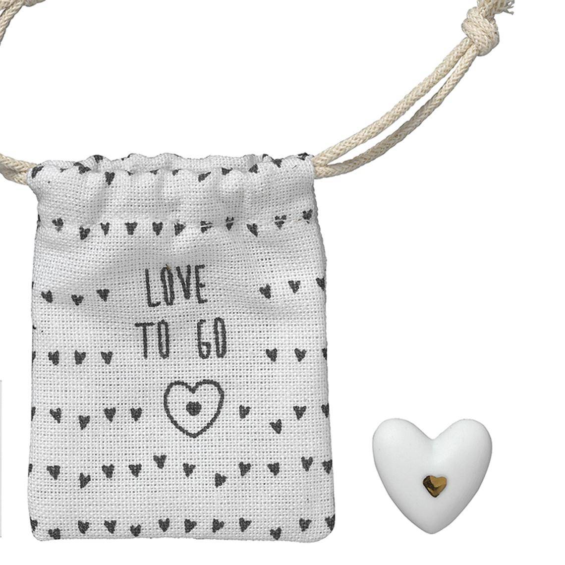 Material: Herz aus Porzellan, Beutel aus Baumwolle