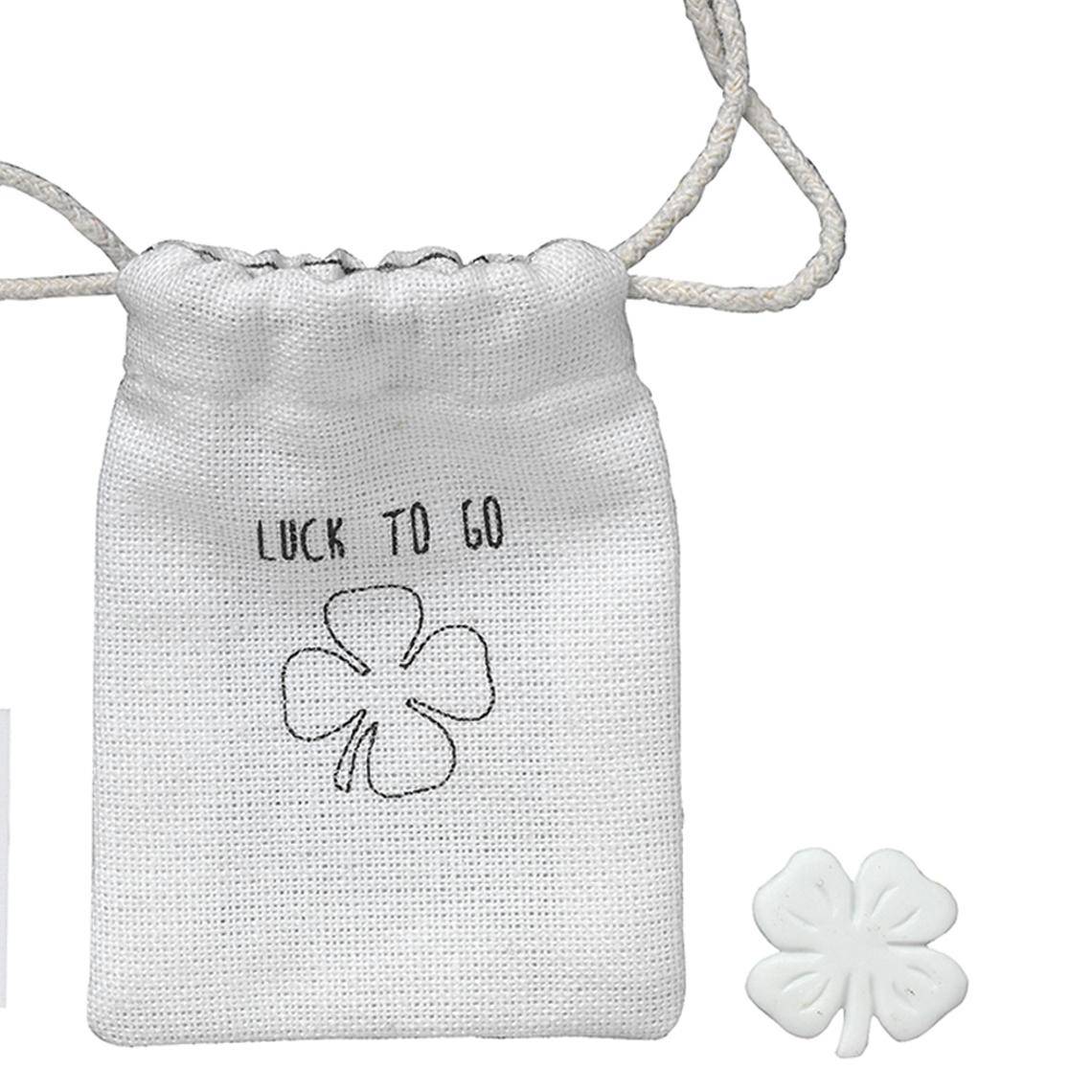 Material: Kleeblatt aus Porzellan, Beutel aus Baumwolle