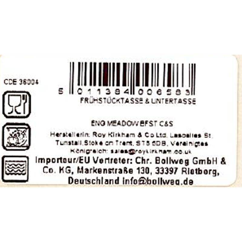 Dieses englische Geschirr ist spülmaschinenfest, lebensmittelecht und mikrowellengeeignet.