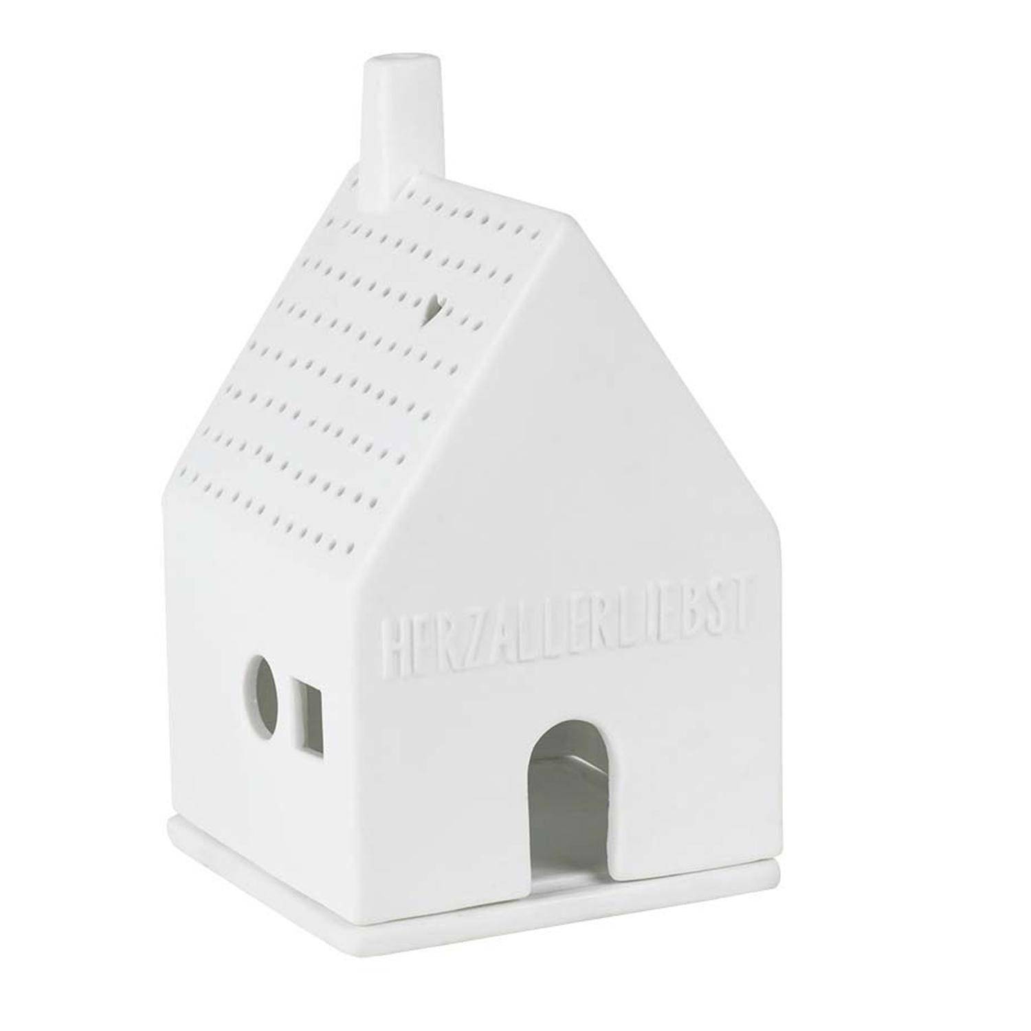 Das Lichterhäuschen ist aus Porzellan gearbeitet und hat die Größe 7 x 7 x 10 cm (Breite x Tiefe x Höhe). Durch die kleinen Öffnungen erhalten Sie eine romantisch elegante Illumination Ihres Wohnraumes.