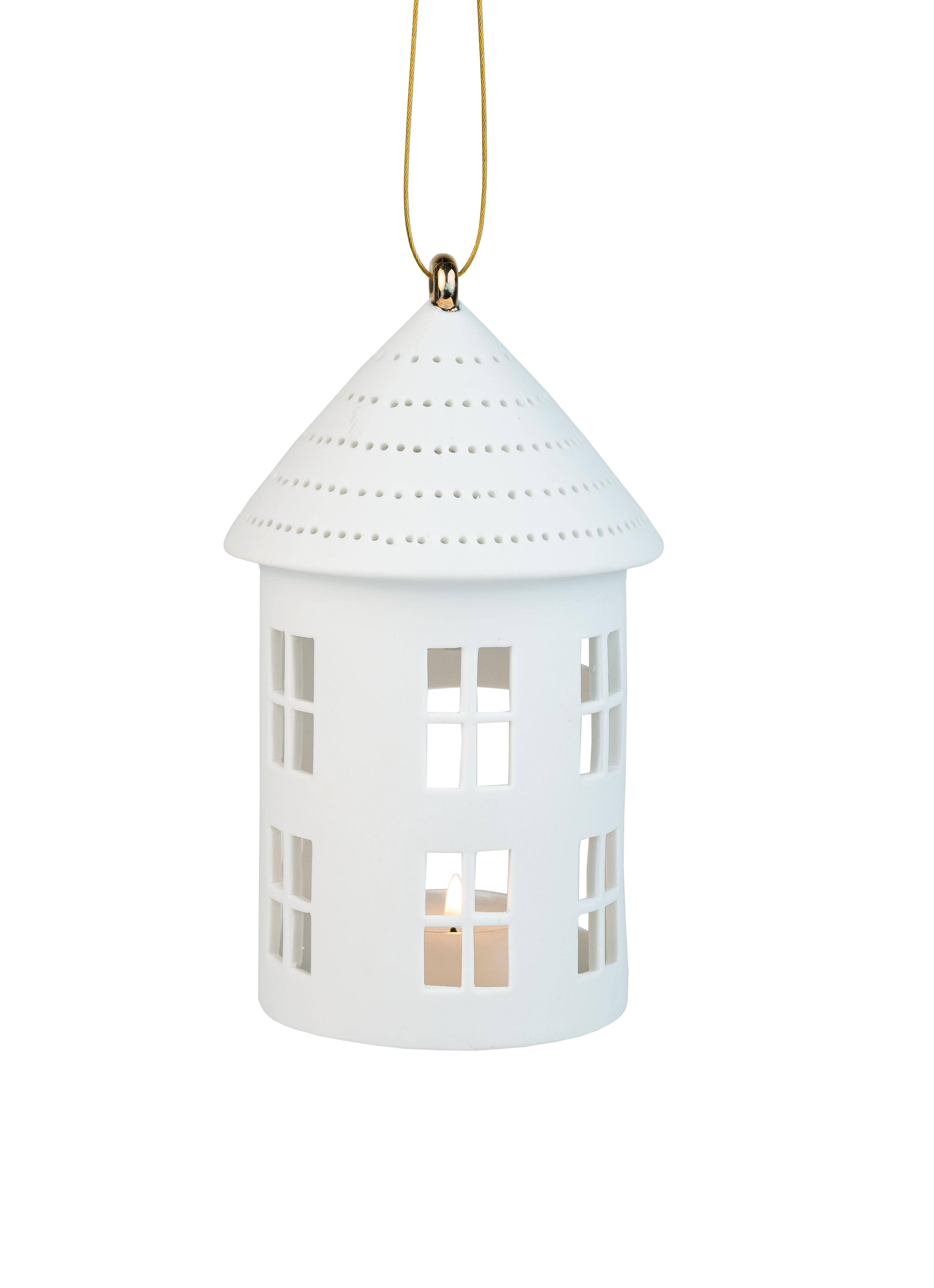 Das Lichthaus ist aus unglasiertem Porzellan gearbeitet und wird von einem Stahlseil gehalten. Die Beleuchtung kann mit einem Teelicht oder einem kleinen LED Licht betrieben werden. Ob hängend oder in einer Gruppe stehen, erzielen Sie mit den kleinen Lichthäusern von Räder Design eine stimmungsvolle Atmosphäre.